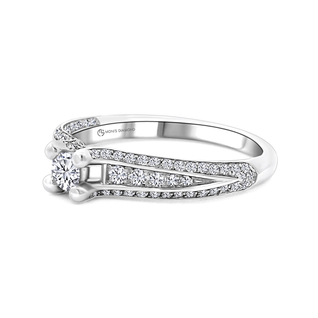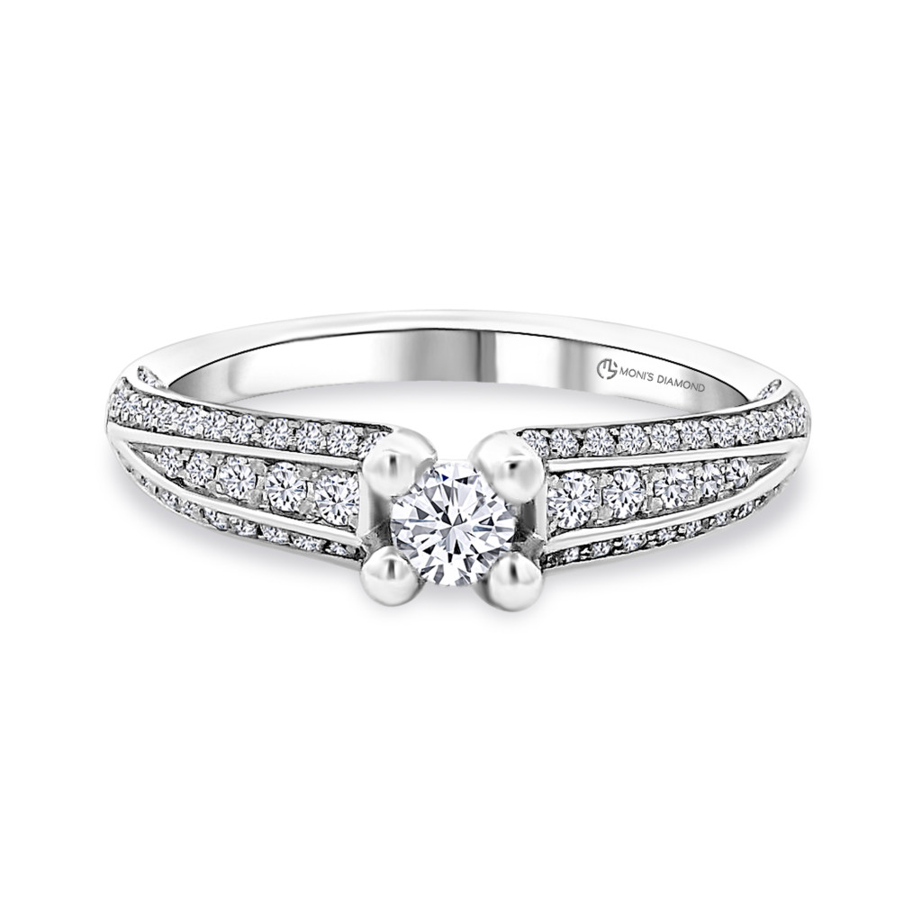 Ez a gyémánt eljegyzési gyűrű a klasszikus elegancia és a kortárs kifinomultság tökéletes egyensúlya. Az ékszerben összesen 0.72 karát, briliáns csiszolású természetes gyémánt ragyog fehérarany foglalatban, finoman követve az ujj vonalát. A VS tisztaságú és G színű gyémántok kivételes fényjátéka garantálja, hogy ez a gyűrű minden pillanatban lenyűgöző maradjon. Letisztult formavilága időtlen megjelenést biztosít, miközben minden részlete a Moni’s Diamond minőség iránti elkötelezettségét tükrözi. A gyűrűhöz hivatalos tanúsítványt mellékelünk, amely igazolja a drágakövek természetes eredetét és kiváló minőségét. Egy ékszer, amely méltó kifejezője a szerelemnek, és életre szóló emléket jelent annak a pillanatnak, amikor elhangzik a legszebb „igen”. A gyémánt eljegyzési gyűrű kiválasztása életre szóló döntés – bízza ezt a különleges pillanatot a Moni’s Diamond szakértelmére és személyre szabott figyelmére.