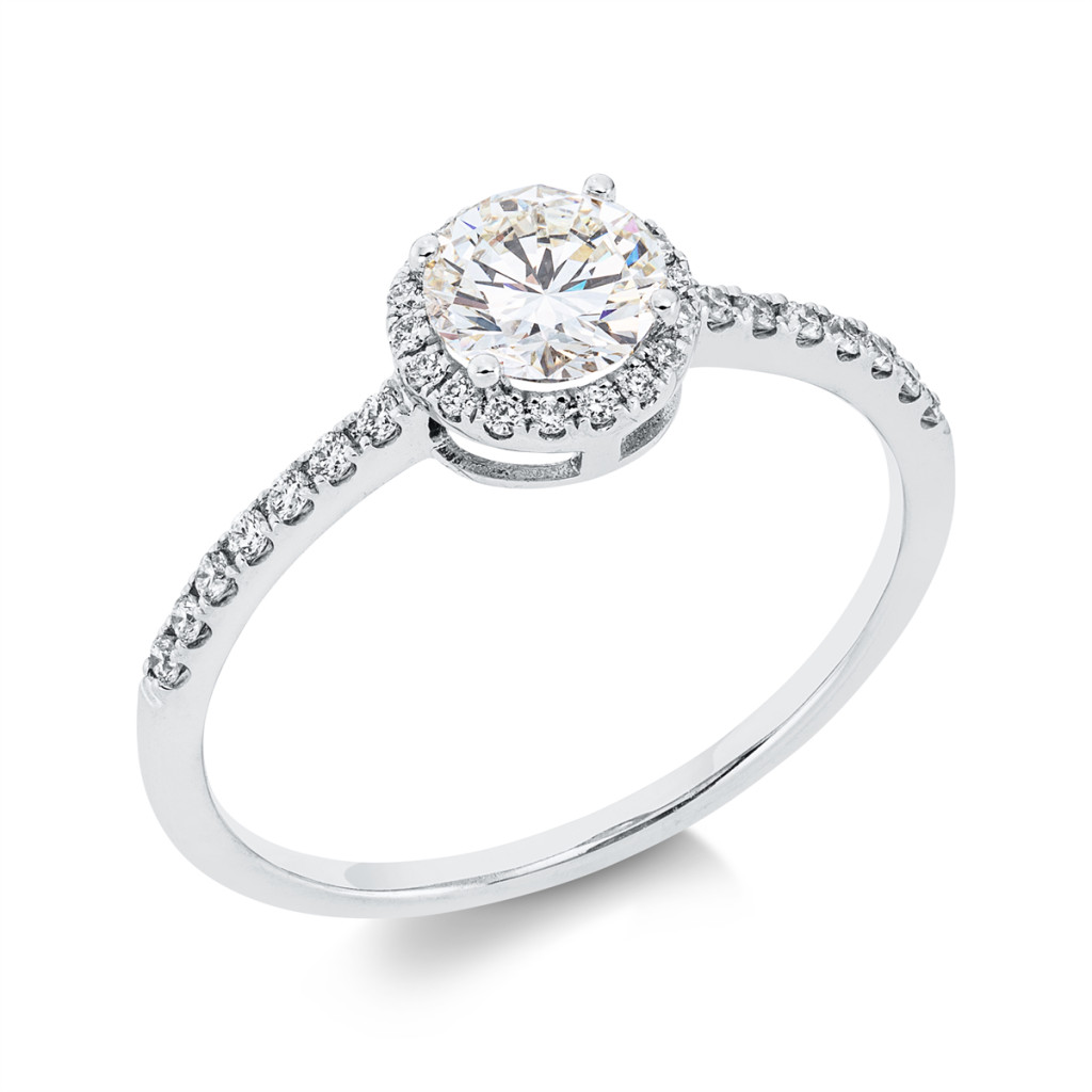 gyürü, fehér arany 18 kt, 1 gyémánt 0,56 ct, G-vsi, 32 gyémánt 0,14 ct, G-vs1