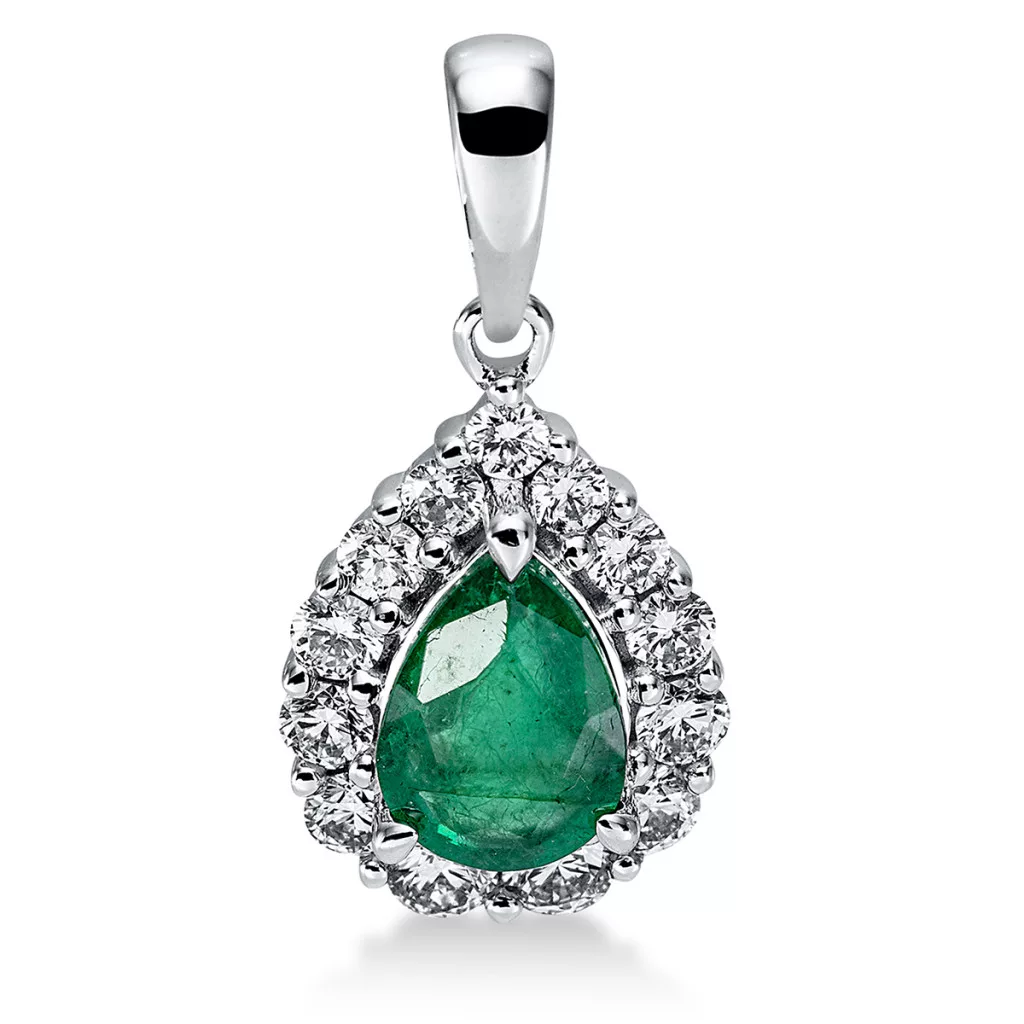 medál, fehér arany 18 kt, 13 gyémánt 0,36 ct, G-vs1, 1 smaragd 0,63 ct zöld, m:18,4 mm, s:9,0 mm, k:3,7 mm