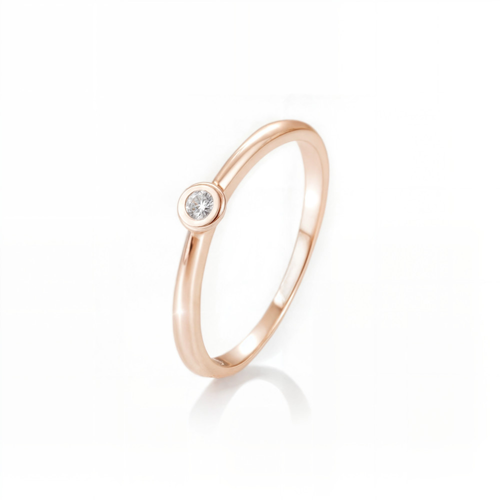 Moni's Diamond Rozé arany Gyémánt Eljegyzési gyűrű összesen 0.05 ct gyémánttal. Az ékszerben SI tisztaságú, H színű, Briliáns csiszolású természetes gyémánt ragyog. A gyémántékszer mellé minőségi tanúsítványt adunk.
