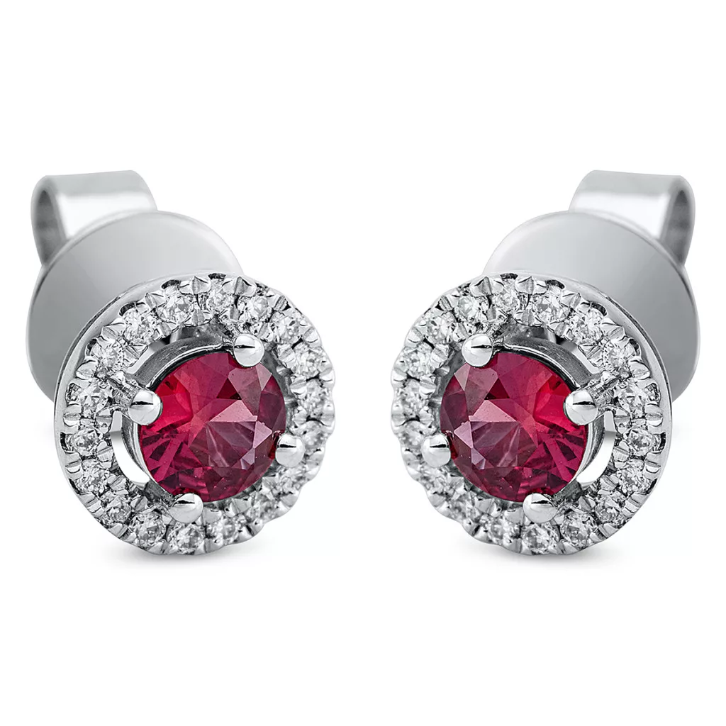 Moni’s Diamond Whitegold Ruby Earrings, presenting a total of 0.13 ct Briliant, SI clarity, G color diamonds and 0,8 ct Ruby. The piece comes with a certificate of authenticity.