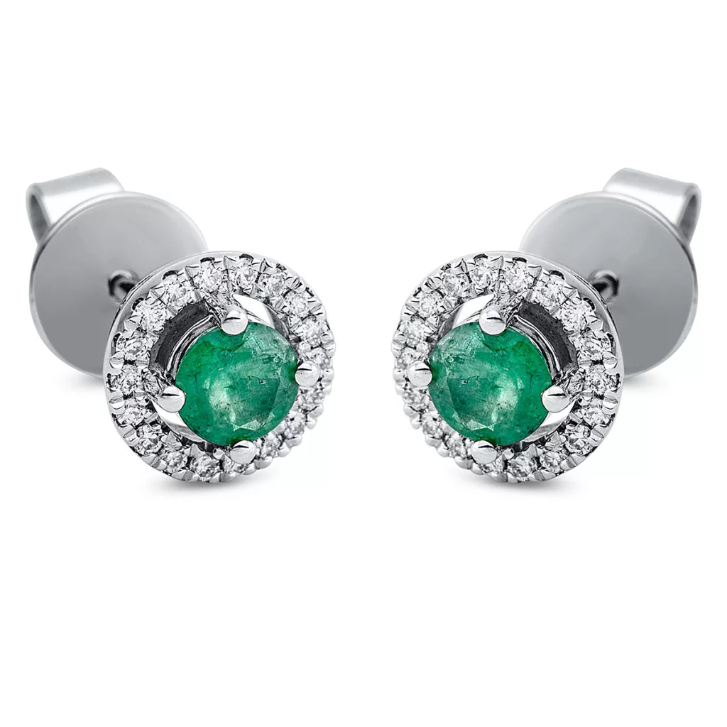 Moni’s Diamond Whitegold Emerald Earrings, presenting a total of 0.13 ct Briliant, SI clarity, G color diamonds and 0,47 ct Emerald. The piece comes with a certificate of authenticity.