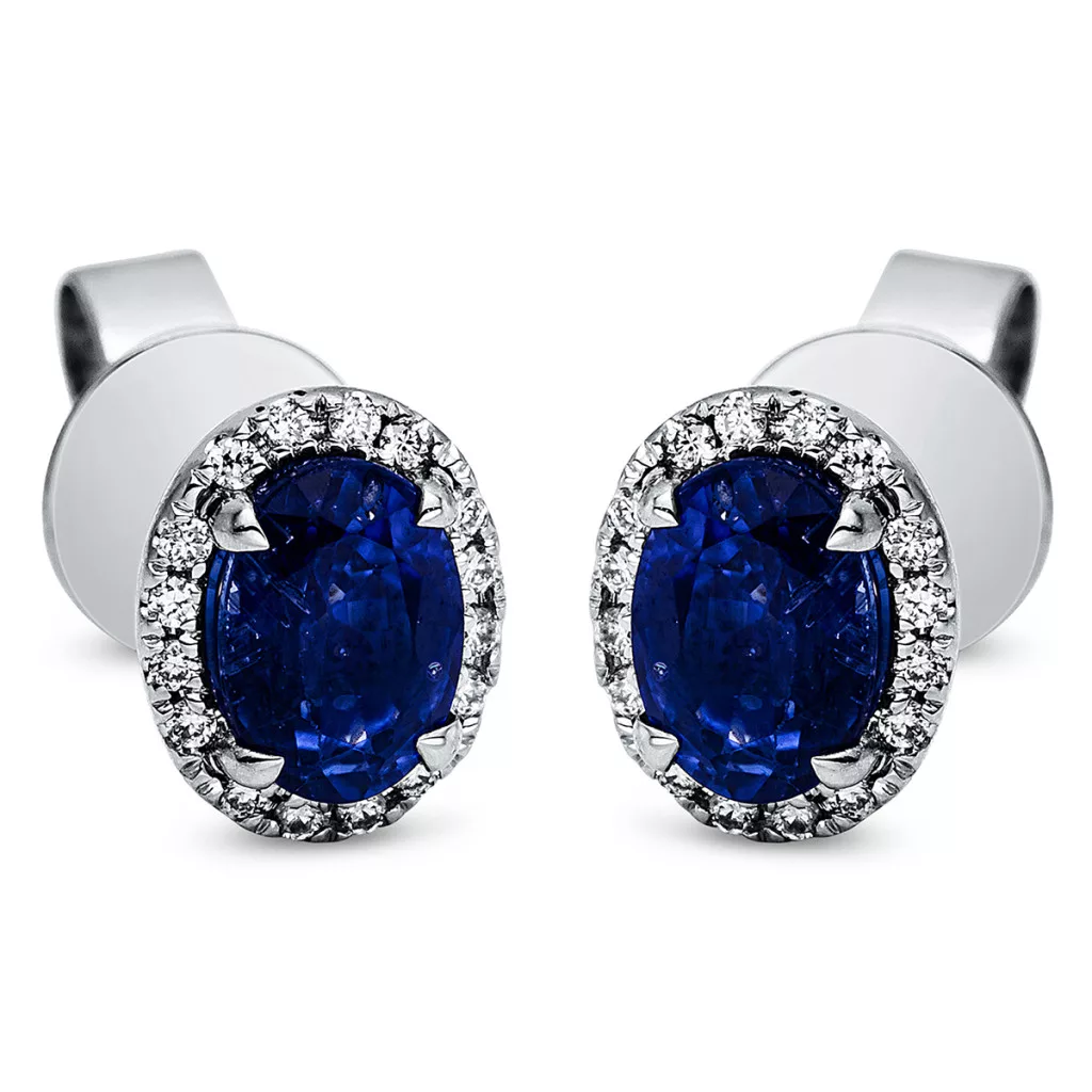 Moni’s Diamond Whitegold Sapphire Earrings, presenting a total of 0.09 ct Briliant, SI clarity, G color diamonds and 1,38 ct Sapphire. The piece comes with a certificate of authenticity.