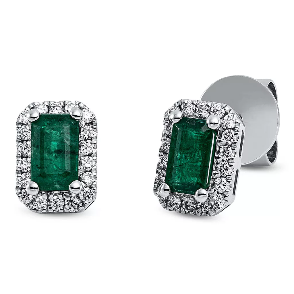 Moni’s Diamond Whitegold Emerald Earrings, presenting a total of 0.13 ct Briliant, SI clarity, G color diamonds and 0,49 ct Emerald. The piece comes with a certificate of authenticity.
