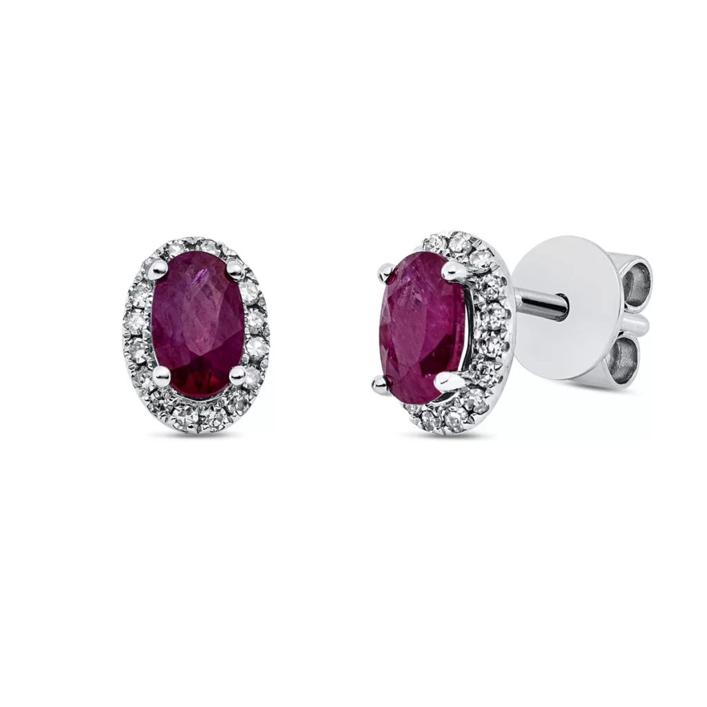 Moni’s Diamond Fehérarany Rubin Fülbevaló összesen 0.1 ct gyémánttal. Az ékszerben SI tisztaságú, G színű, Briliáns csiszolású természetes Gyémánt és 0,66 ct Rubin drágakő ragyog. A gyémántékszer mellé minőségi tanúsítványt adunk.