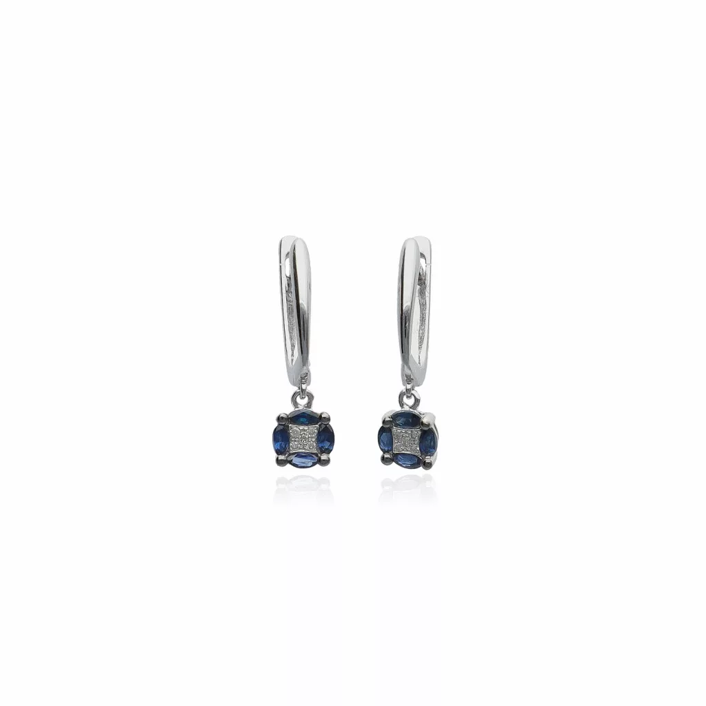 Moni's Diamond White Gold Sapphire Earrings, presenting a total of 0.031 ct Brilliant, Siclarity, H color diamonds and 0,336ct Blue. The piece comes with a certificate of authenticity.