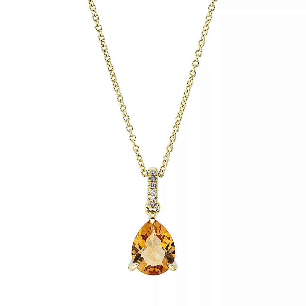 Moni’s Diamond Yellowgold Citrine Necklace, presenting a total of 0.02 ct Round, SI clarity, G color diamonds and 1,48 ct Citrine. The piece comes with a certificate of authenticity.