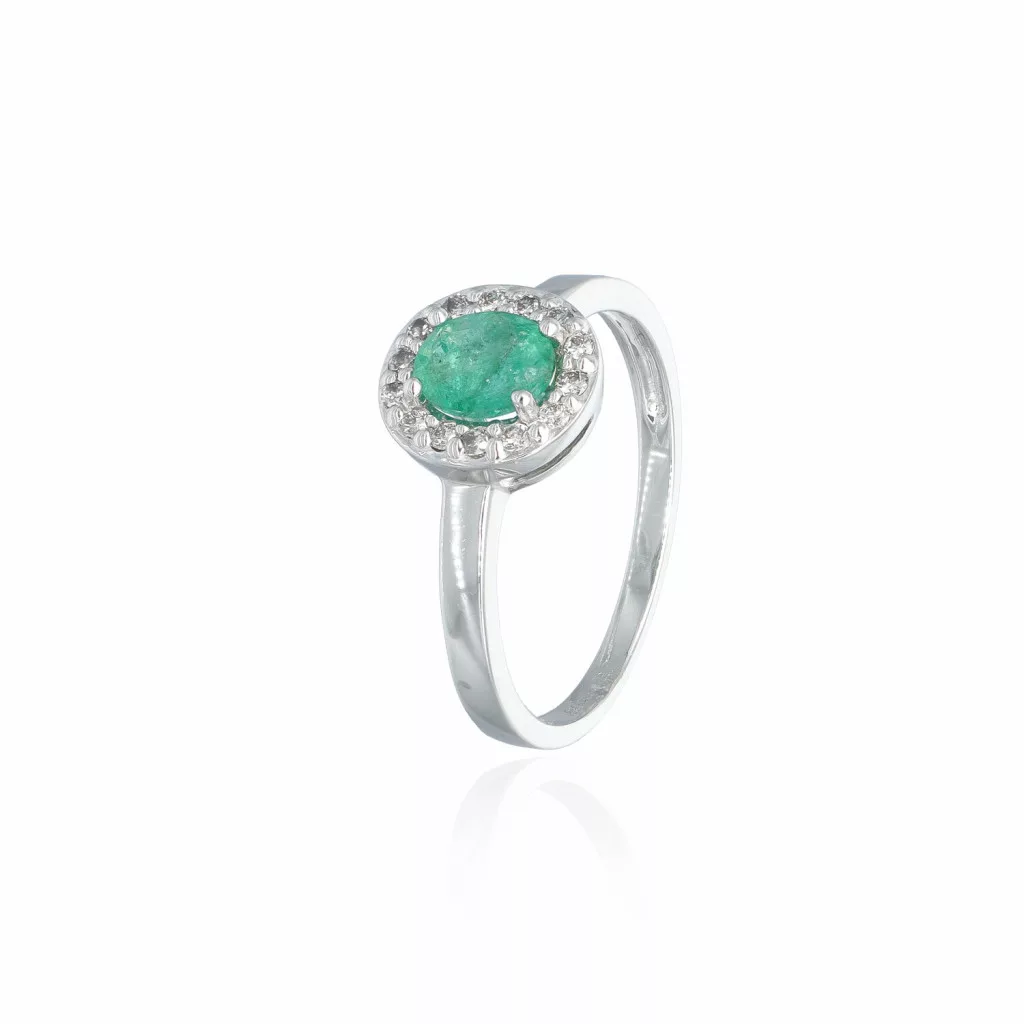 Moni's Diamond White Gold Emerald Ring, presenting a total of 0.15 ct , Vsclarity, G color diamonds and 0,62ct . The piece comes with a certificate of authenticity.