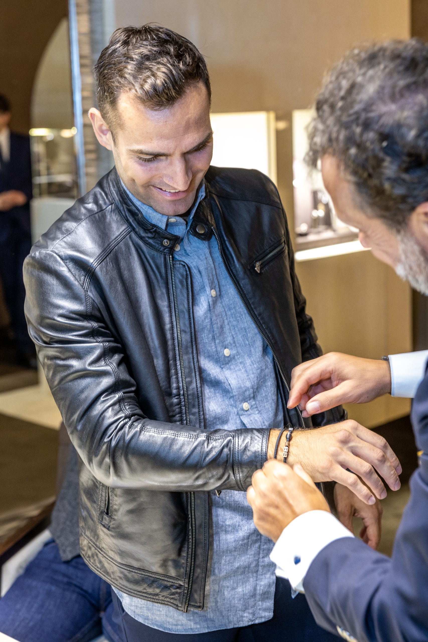 A minőség iránti törekvés és igény a Moni’s Diamond számára is alapkövetelmény, ezért örömmel és büszkén fogadtuk a kollaboráció lehetőségét, és ajándékoztuk meg tiszteletünk jeléül Szilágyi Áront a legtökéletesebb kézműves munkával készített egyedi MEISTER férfi karkötővel, amelynek tervezői feladatait személyesen az ikonikus ékszermanufaktúra tulajdonosa, Fabian Meister irányította.