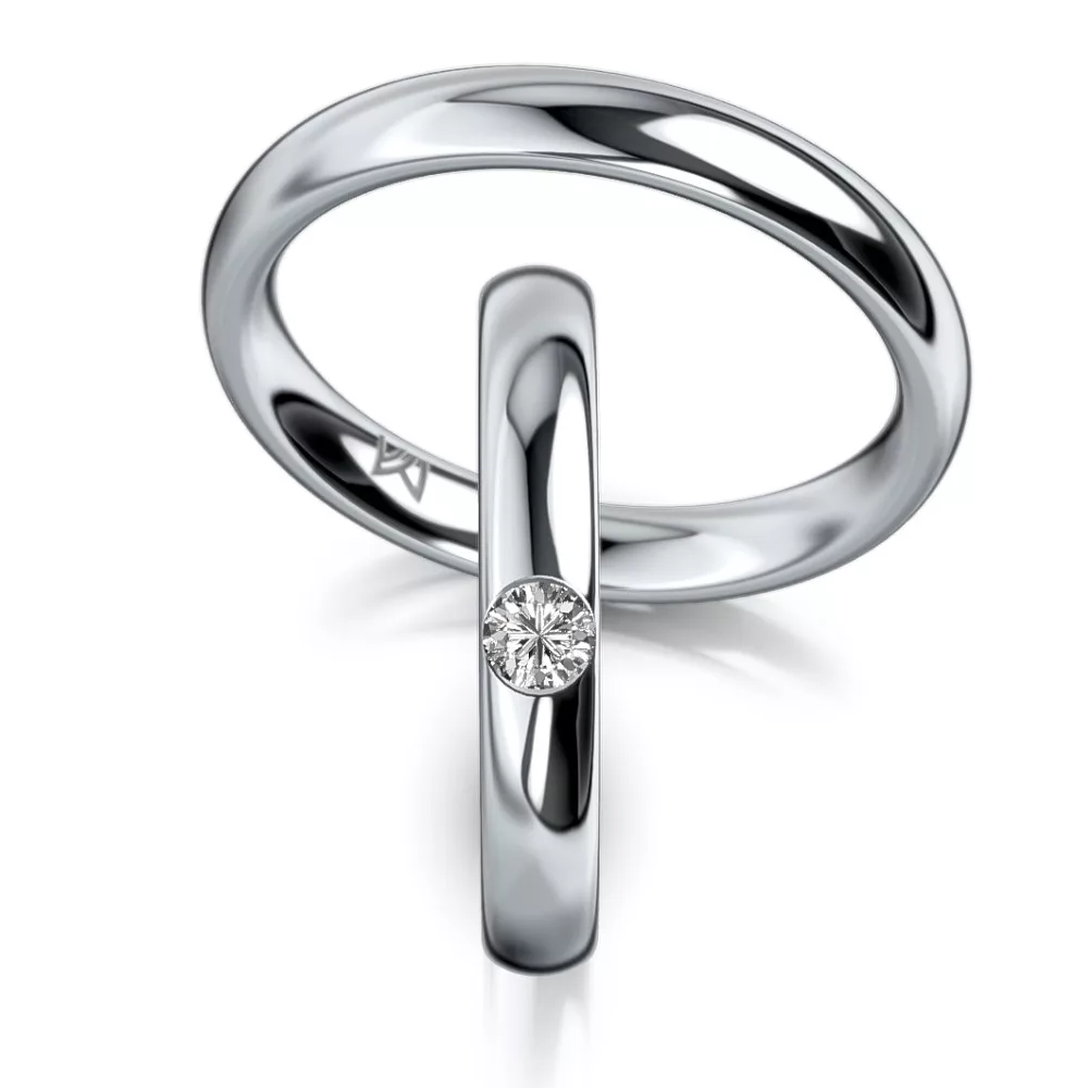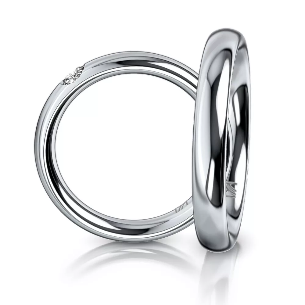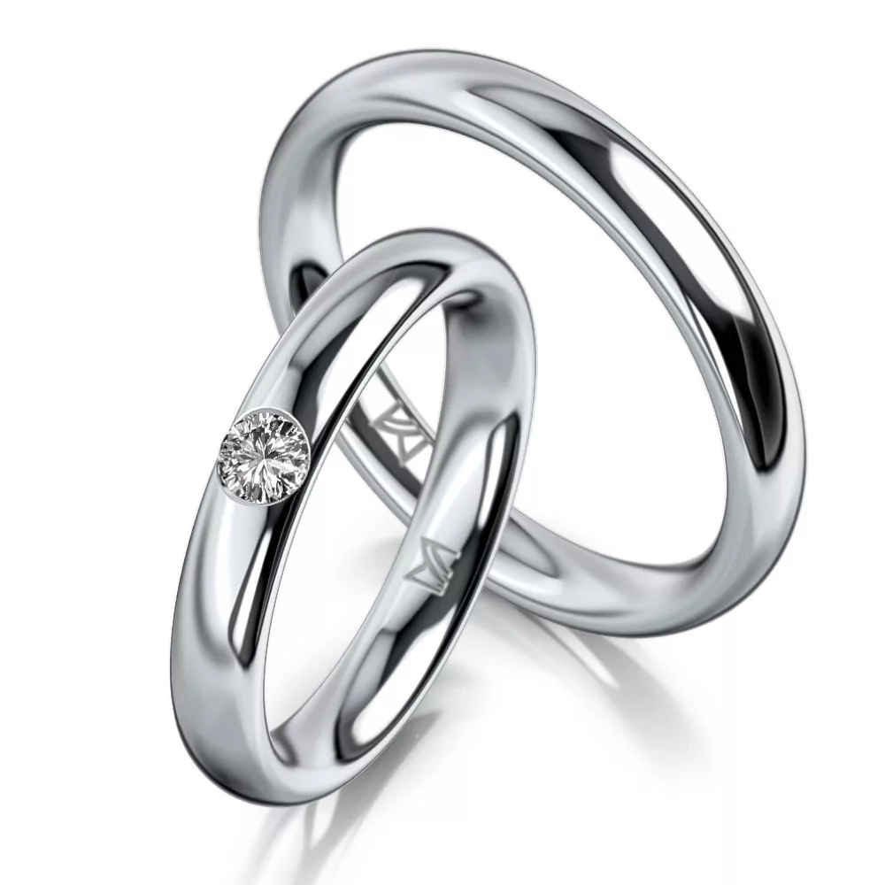 A Red Dot-díjas svájci Meister manufaktúra 1897 óta képviseli a kifinomult ékszerkészítés hagyományát, ötvözve a modern formavilágot és a kézműves részletességet. Ez a Pt950 platina karikagyűrű a klasszikus stílus egyik legszebb példája: a női karikagyűrűt egy gondosan válogatott gyémánt (0.13 ct, G-VS tisztaság) díszíti, míg a férfi karikagyűrű visszafogott, gyémánt nélküli kialakításban készül. A polírozott felület nemcsak letisztult esztétikumot, hanem kényelmes viseletet is nyújt.